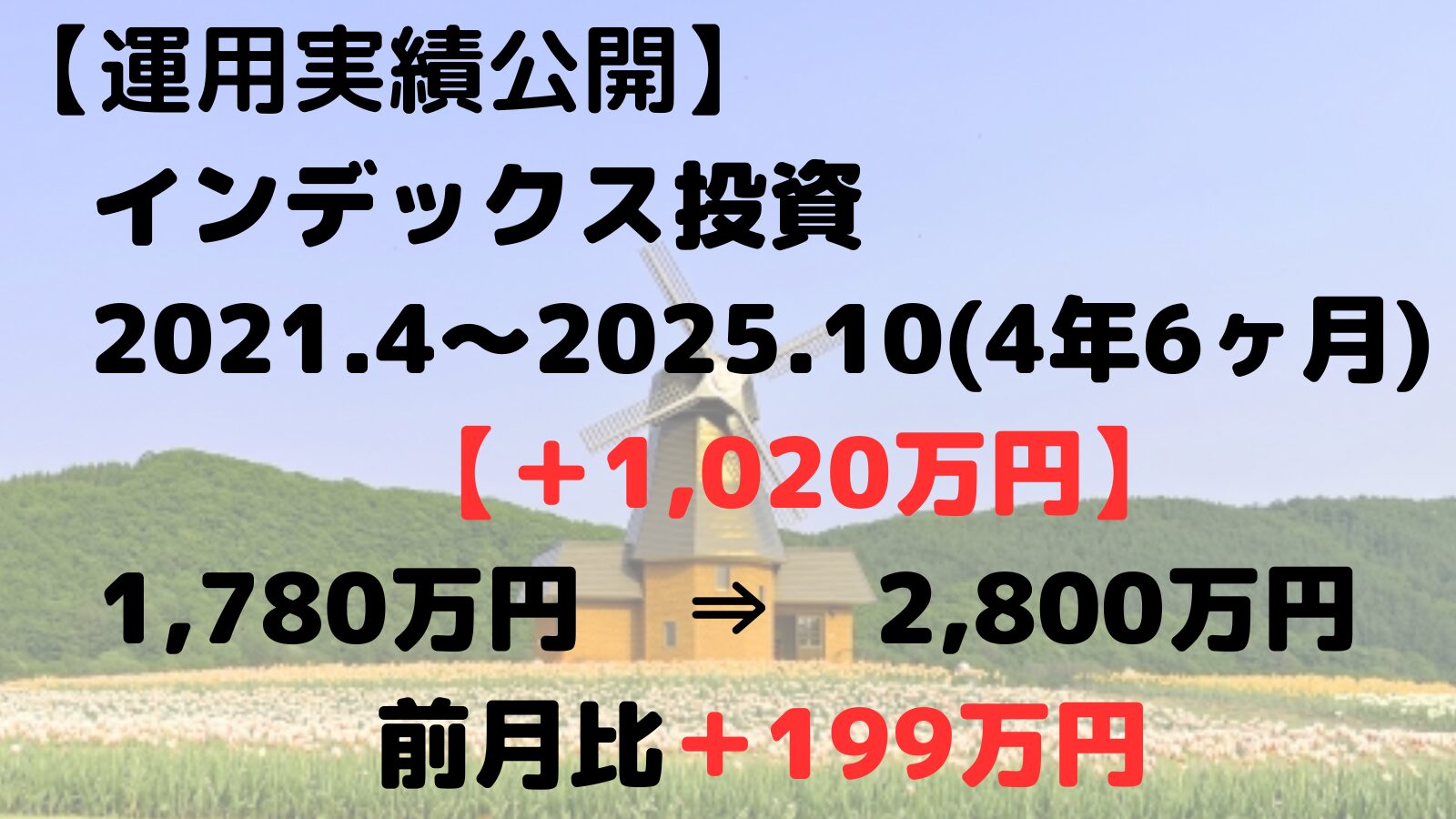 私は 2021年4月にインデックス投資をスタートし、4年6ヶ月で+1,030万円(+58.3%)の利益 を達成しました。